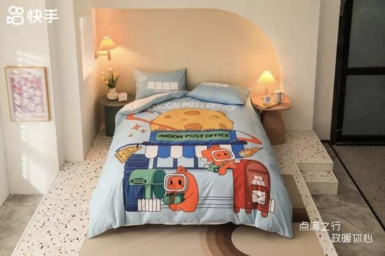 看这床单被罩四件套,整得还挺温馨,但是谁睡觉的时候还想看着公司的logo啊!