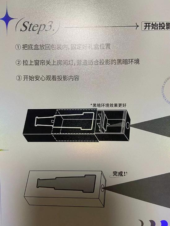 除此之外,还有一个很妙的细节,这个月饼盒子还能组装成一个简易投影,把手机屏幕投影到墙上。