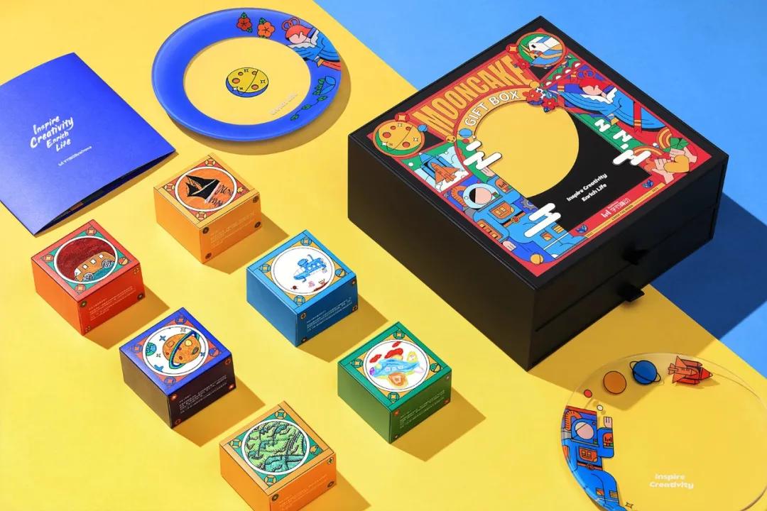 今年字节跳动的中秋礼盒以儿童公益项目——“益童乐园”为主题,主要设计风格由嫦娥+航天员构成,科技与传说的碰撞创意十足。