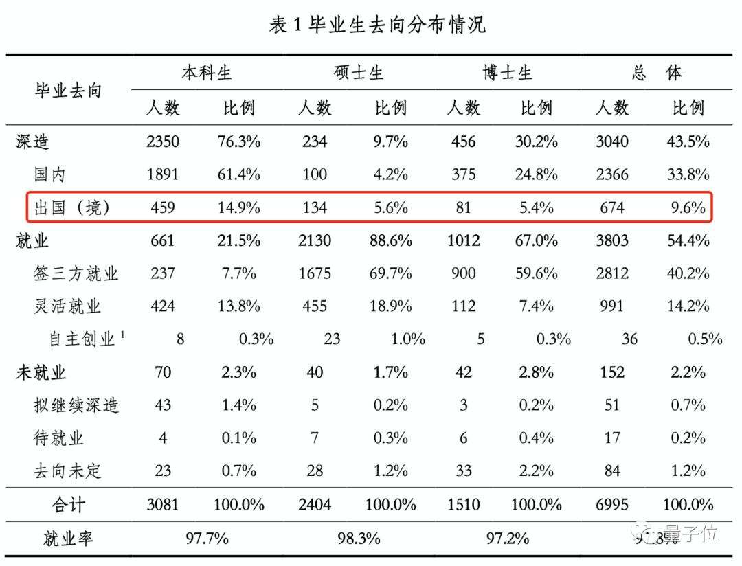 博士毕业出国深造的人数有上升,清华北大分别有5%和1%左右增长。
