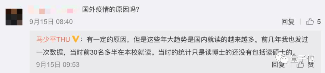 这是马教授给出的回应,他直言:在三四年前,系内前30名的学生中,就有超过半数的人选择在系内读博了。