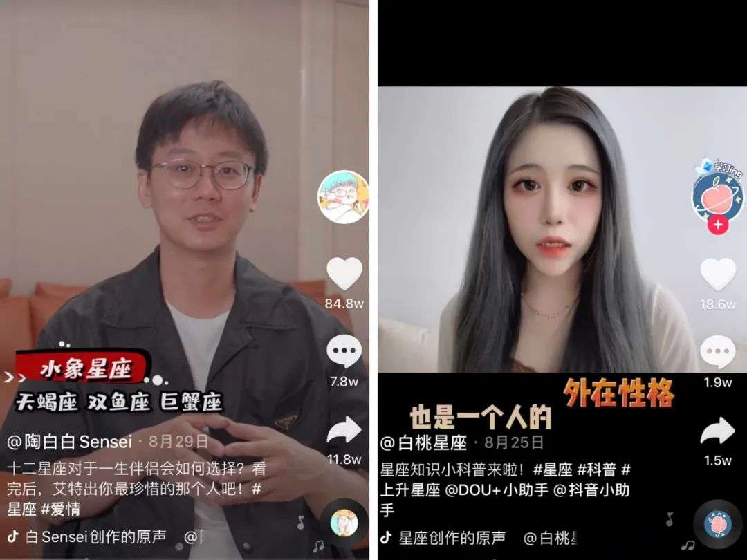 增粉量在500W以上的账号有4个,其中最近风头无两、以“准”著称的星座账号@陶白白以769.6W的增粉量鳌头独占。值得注意的是,除了@陶白白,我们还看到另一个星座账号@白桃星座以481.9W的增粉量登上了榜单TOP5。不难看出,@陶白白的爆火似乎让星座内容的关注度和热度获得了同步攀升,从而走向了更为大众的圈层。