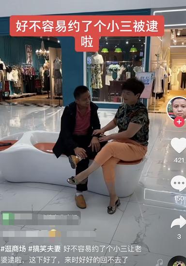 类似恶心的剧集并不仅仅如此,另一则奇葩的视频,视频中两中年男女一本正经的在商场进行着所谓的“约会”,时而比划时而推拉,标题醒目的“好不容易约了个小三被逮啦”的字眼,在招揽着“顾客”,极为刺眼。