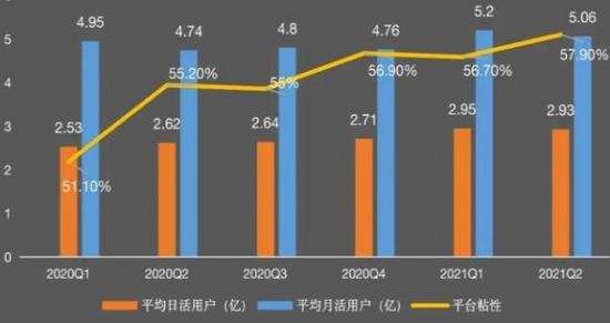 在快手APP用户黏性上也在56%上下浮动,并没有明显的增长。