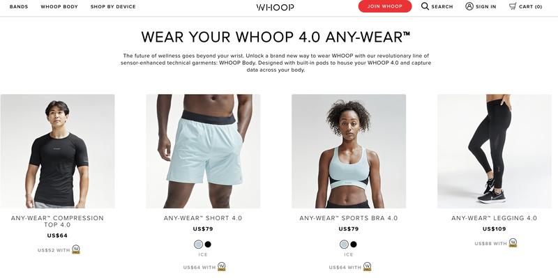 为了跳出运动手环这个限制,增加自身的产品丰富度,Whoop在新品发布会上还推出了新产品系列Whoop body,这是一种带有内置吊舱的运动压缩服,可以放置Whoop设备进行数据收集。官网显示,Whoop body系列产品的价格在69-109美元之间。