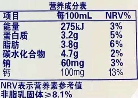 光明纯牛奶营养成分表.