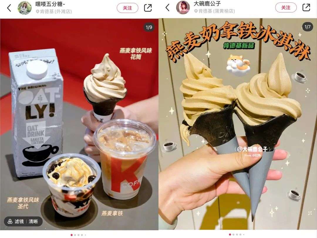 作为最火的植物奶品牌,Oatly 的「野心」更不局限于一瓶奶。今年的 KFC 金秋新款是燕麦拿铁冰淇淋;去年,Oatly 推出了即饮版的燕麦冷萃拿铁,与满记甜品合作上线了三款甜品燕麦饮;此外,Oatly 还有燕麦基奶油、燕麦基酸奶和系列燕麦产品调饮。