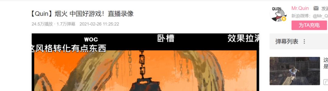 资深主机游戏主播秦先生在通关《烟火》之后,罕见地对一款国产独立游戏给出了很高的评价。彼时,他直播间的氛围是一言难尽的,这部作品引起了主播与观众强烈的情感共鸣,以至于在震撼人心的真相浮出水面之时,无数观众在“破防了”的同时也对制作者表示了尊敬,这样的情况在以男性观众为主的直播间里是非常难见的。