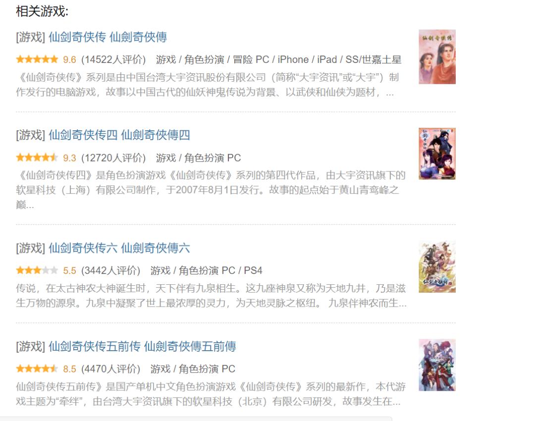 它们的成功离不开原作的优秀,初代《仙剑》在国产单机历史上有着难以撼动的地位,豆瓣1.4万评价9.6分,bangumi8.7分,是无数老玩家的童年回忆,剧情、人物塑造在当时皆属于世界准一流水平,是国产游戏经典之作。而续作《仙剑奇侠传三》也获得了豆瓣8.9分的评价。
