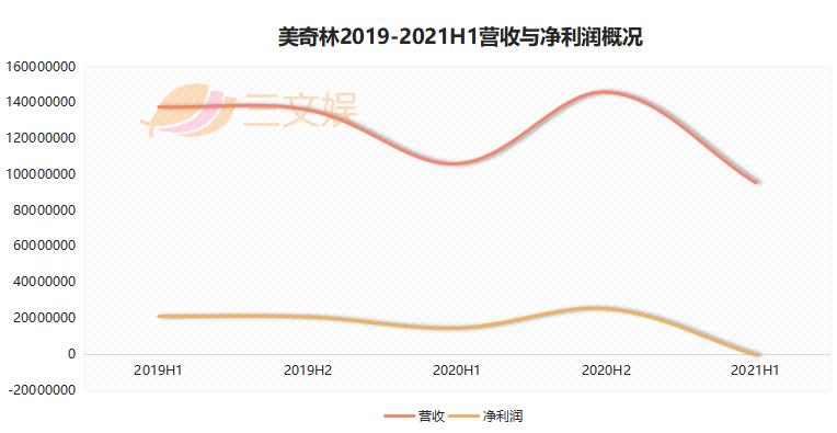 业绩承诺期满之后的2021上半年,美奇林实现营业收入95,274,267.08元,同比减少 9.96%;实现净利润-591,359.51 元,同比减少104.10%。