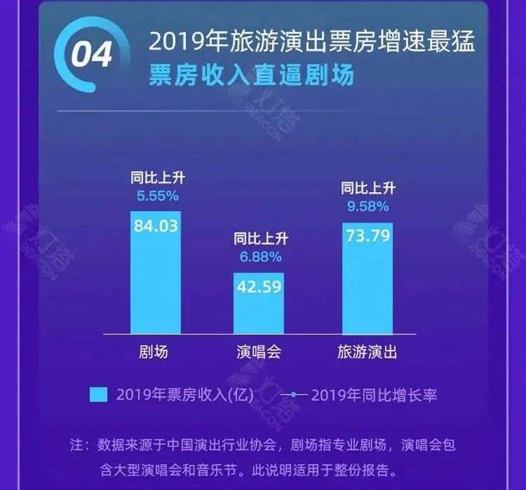 一个利好是当下大众对线下演出的认知和消费意识是在提升的。大麦与灯塔专业版联合发布的数据显示,2019年中国演出票房超200亿,年增长率7.29%,增速超过电影市场;其中剧场演出收入84.03亿元,同比上升5.55%。去年疫情好转后,10月购票观演人数已经恢复到70%以上。