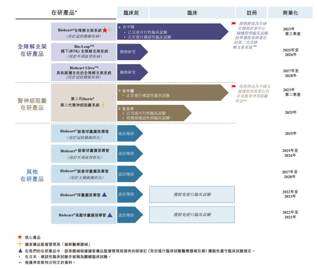 为解决中国血管疾病及高血压患者的未满足医疗需求,公司已开发一套全面的介入式装置在研产品组合,其中包括: