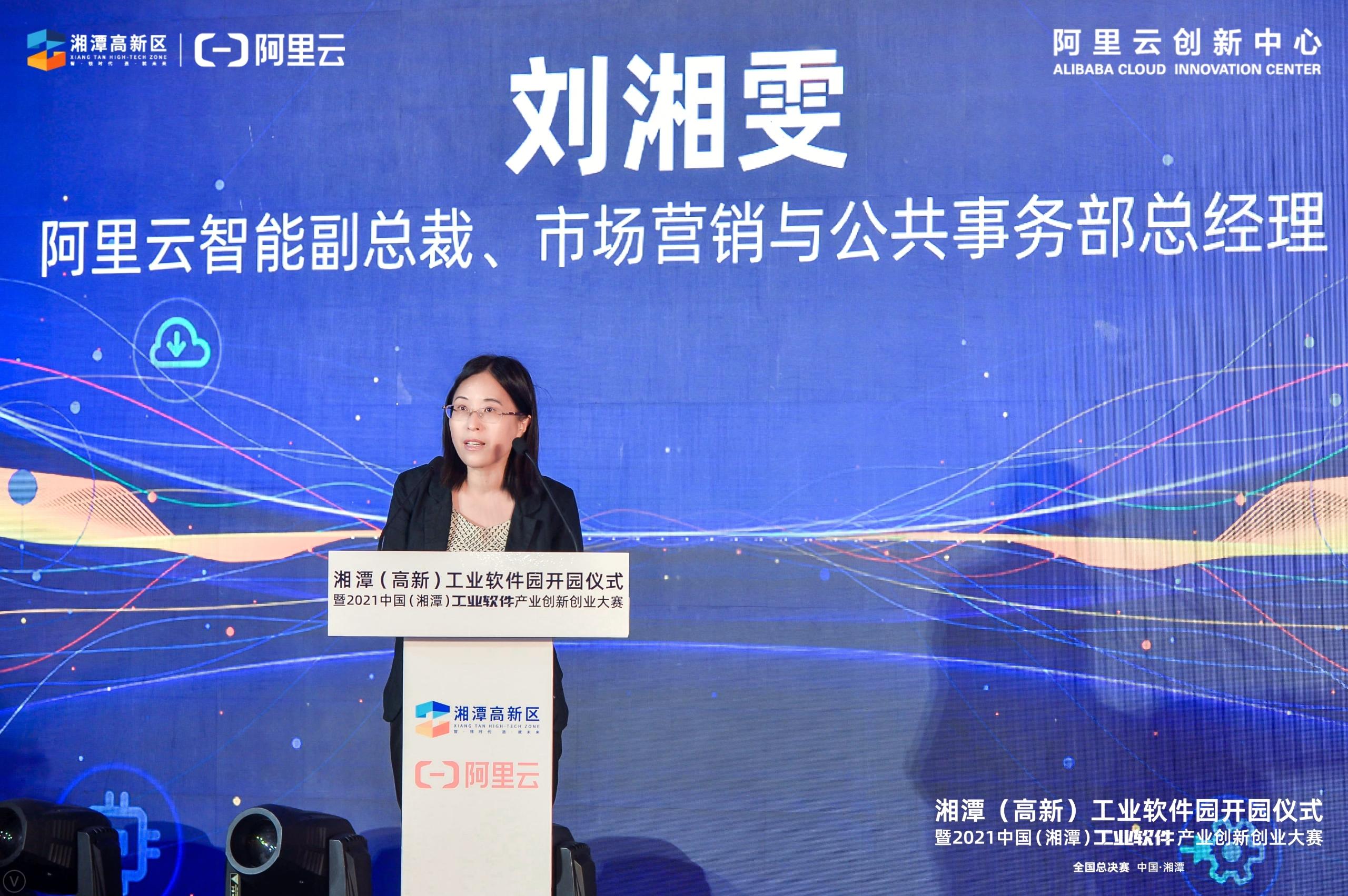 阿里云智能副总裁、市场营销与公共事务部总经理刘湘雯在致辞中提到:湘潭高新区与阿里云合作落地创新中心项目,在创新人才汇聚、科技产业培育、工业产业建设三个方面已经有了阶段性成果,未来希望能够与更多的科技创新企业一起,携手共建数字化及工业软件产业新生态,为湖南省和湘潭市的数字经济建设与工业软件发展贡献力量。