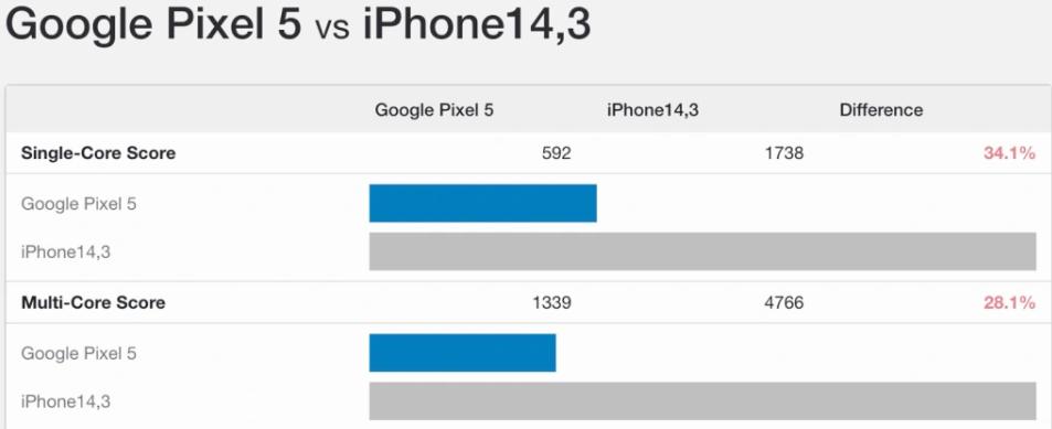 但测试结果再次表明,iPhone 13可能把主要的安卓竞争对手拉开了差不多一代的差距。