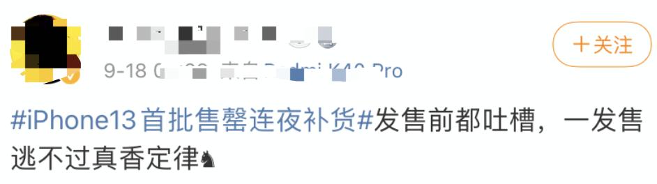 其中, 猛男粉不到3分钟就被疯抢一空 ,还有远峰蓝也成为iPhone 13配色热销款。