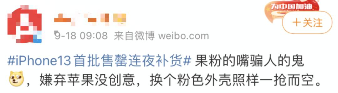 有网友表示,「果粉的嘴骗人的鬼,嫌弃苹果没创意, 换个粉色外壳照样一抢而空 。」