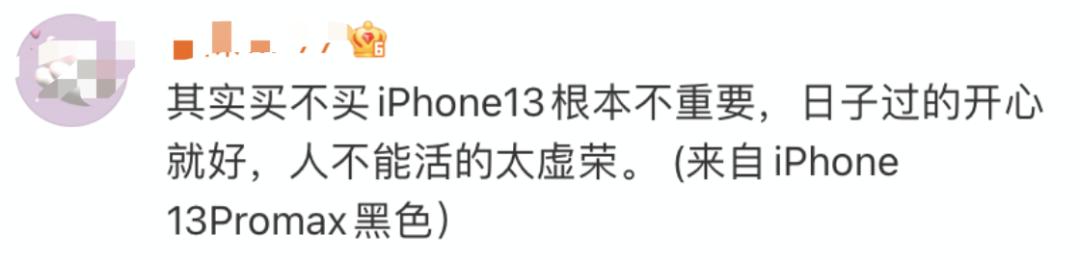 「其实买不买iPhone13根本不重要,日子过的开心就好,人不能活的太虚荣。 (来自iPhone 13Promax黑色) 」