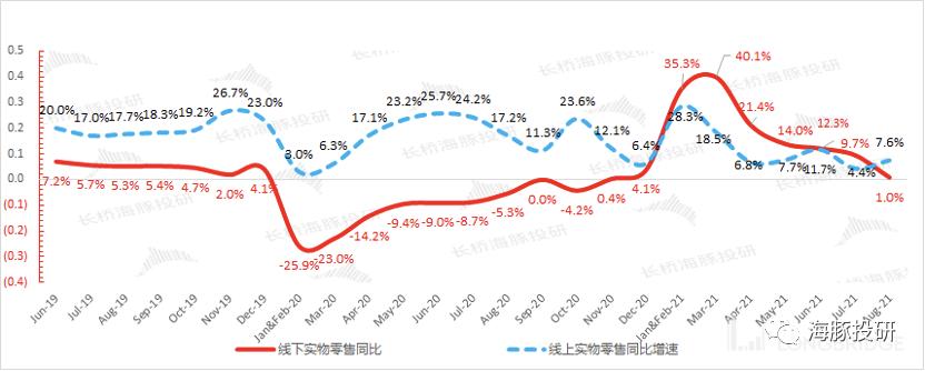 只是,行业内玩家的竞争虽然有缓和、流血投入稍有刹车迹象,但线上零售整个行业面临的消费逆风超出预期:下半年一般情况下会进入消费旺季,但是今年三个季度中已经有两个月份线上消费持续低迷,6月线上实物零售增长4.4%,7月增长7.6%,到了罕见的中个位数。