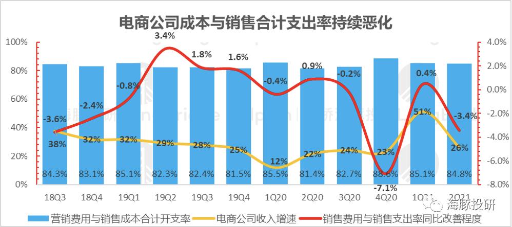 到目前二季度的实际支出来看,从2020年四季度开始,行业竞争持续恶化,到了今年二季度,行业收入同比扩张速度26%(不含高鑫并表因素是22%),但同比的成本和营销支出率拉高了三个百分点。