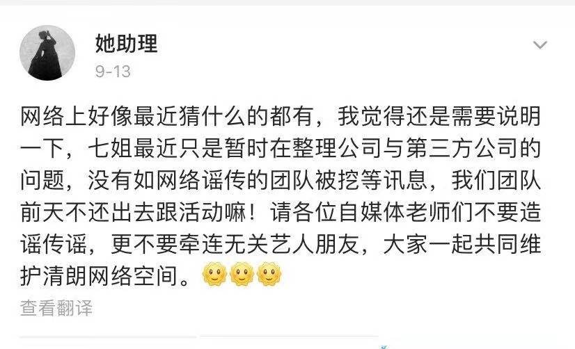 2.李子柒助理回应凤凰网科技:“七姐(李子柒)最近只是暂时在整理公司与第三方公司的问题,没有如网络谣传的团队被挖等讯息。”