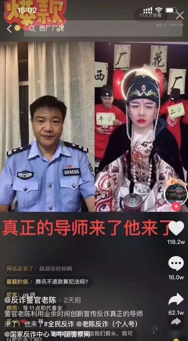 “反诈警官老陈”原名陈国平,是秦皇岛市公安局海港分局的一名警官。9月1日,他与快手主播“雨化田”的一场直播PK成为了话题焦点。老陈不仅向对方直播间的观众们宣传了国家反诈App,同时还灵机一动让“雨化田”将宣传工作自觉带到下一场直播PK当中去,由此形成了一场病毒式传播,整个快手直播都变成了国家反诈App的宣传地。