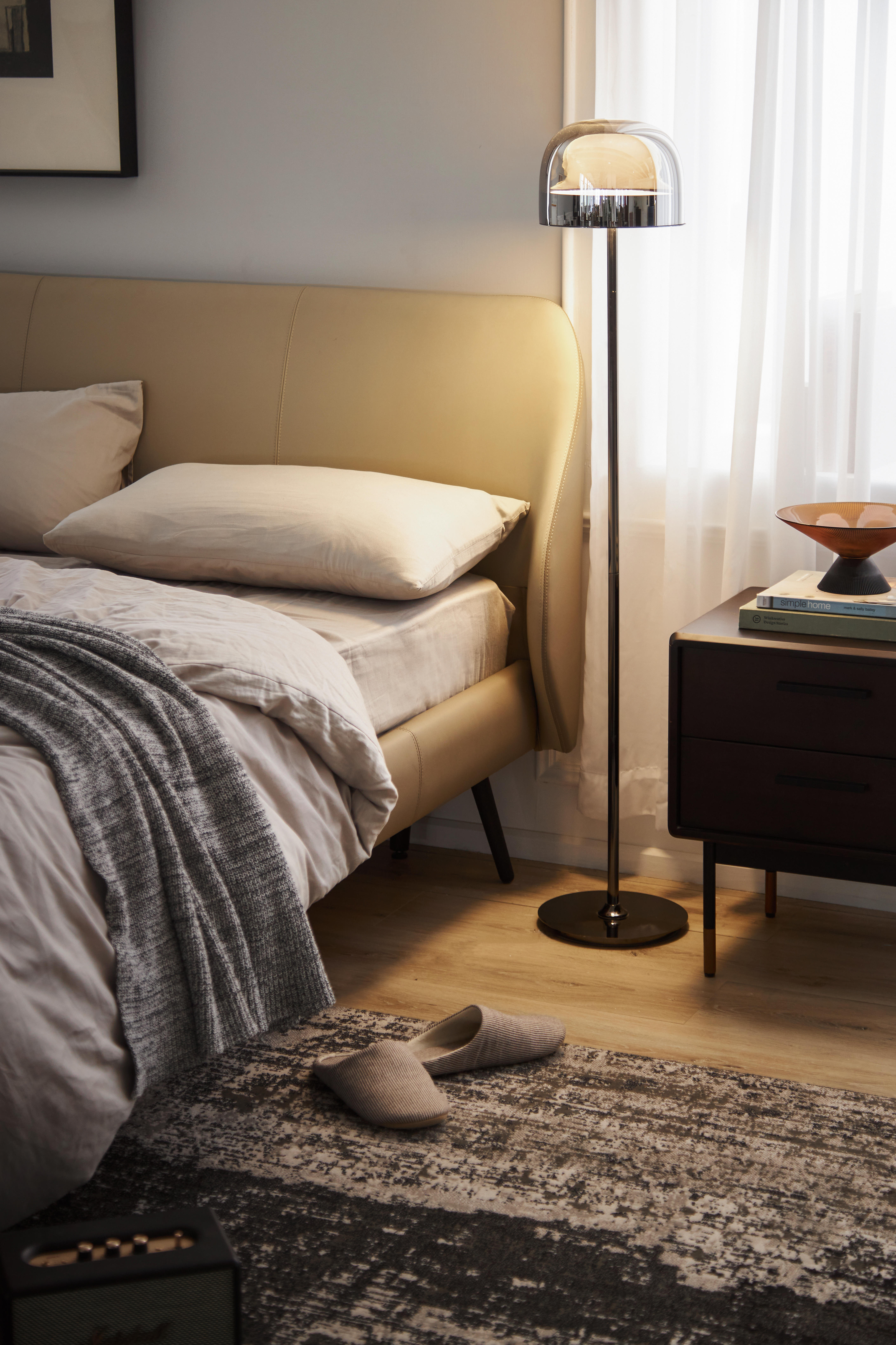 床头轻微的斜面与弧度,让人体倚靠更加舒适,床头皮质选用荷兰进口的高档纳帕牛皮,床身为超纤皮包裹,比天然皮革更加耐磨。Corrine 表示,宜氧软床的材质选择对标线下万元价位的产品,高质感且耐用。