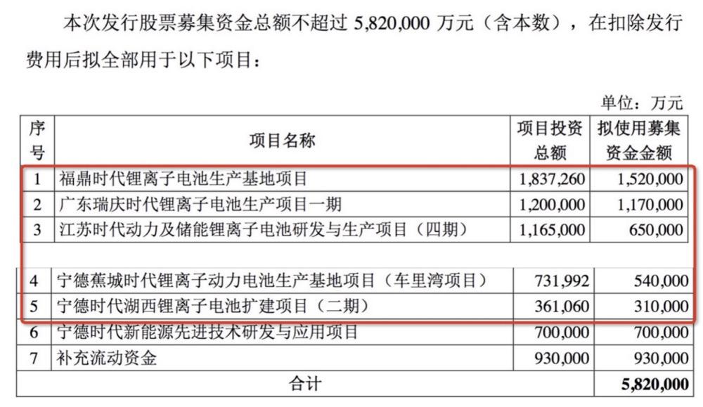 据「子弹财经」计算,在宁德时代新一轮募资计划中,有419亿元拟用于扩充产能,若相关项目成功建成,宁德时代将新增锂离子电池年产能约137GWh及部分PACK生产线、年产能约30GWh储能电柜等。