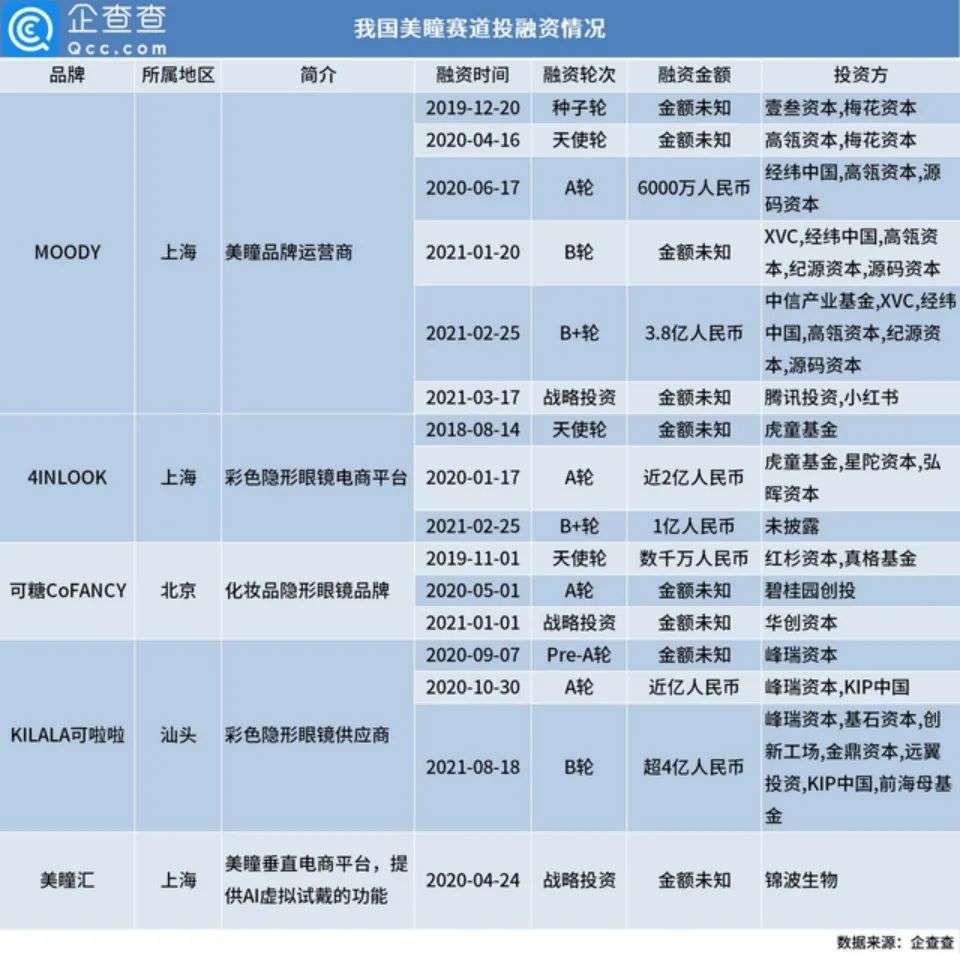 可啦啦更是在今年拿下超4亿元B轮融资,刷新美瞳赛道融资记录。