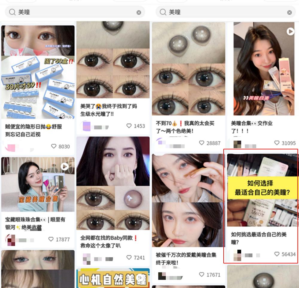 明星受限,美瞳品牌们则在抖音、小红书等营销平台以及红人推广合作下功夫。