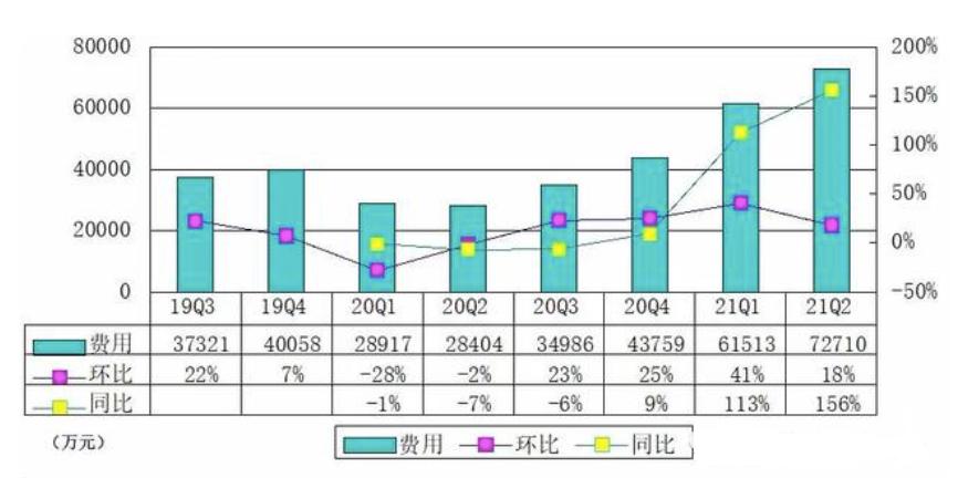 从财报来看亏损原因主要来自运营费用的高涨。今年二季度知乎总运营费用达7.27亿元,同比增长156%。其中销售和营销费用为4.432亿元,同比增长高达202% ——为了吸引新用户,知乎花费的成本着实不小。