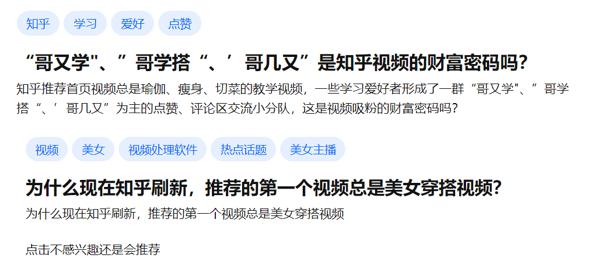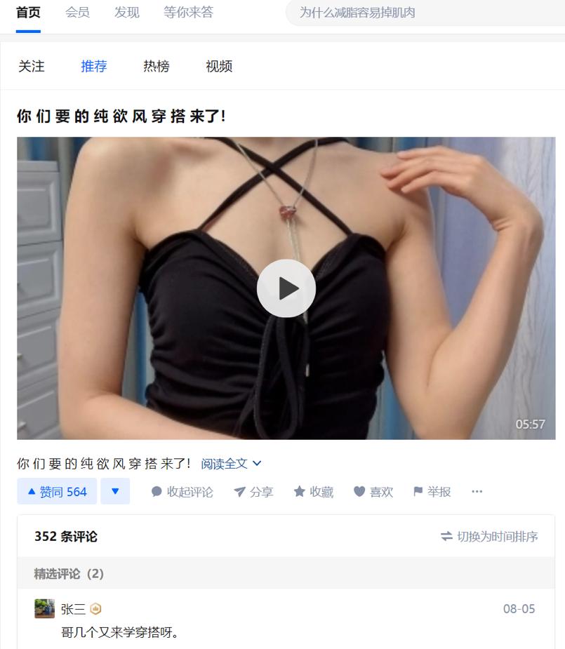 现在市场的现象是“短视频在知识化”,“知乎却在短视频化”。抖快B站快看们在视频赛道中抢占知识类的位置,而知乎视频也和这些视频平台走向了“重合”,短视频平台被诟病的一些内容质量问题,知乎视频几乎是全盘复制了——比如没啥营养还涉及版权问题的搬运剪辑、比如穿着大胆身材火爆的瑜伽、单身vlog、穿搭、跳舞……