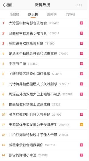 月到中秋分外明。中秋节的仪式感,有一半是在秋晚中被见证的,而微博热搜则见证了秋晚的热闹。