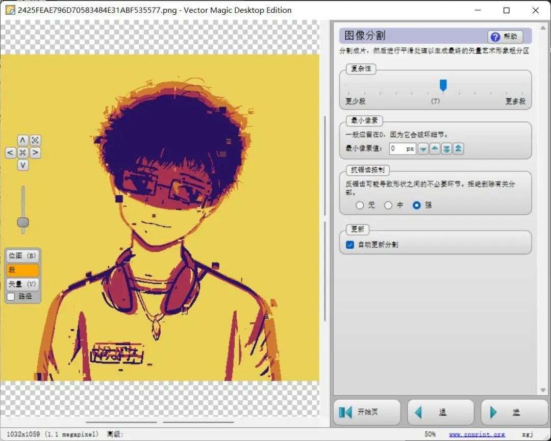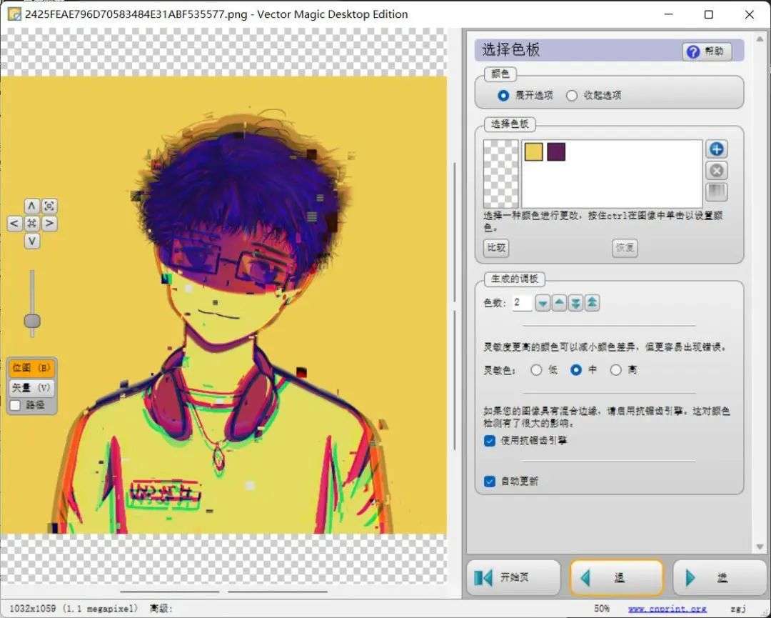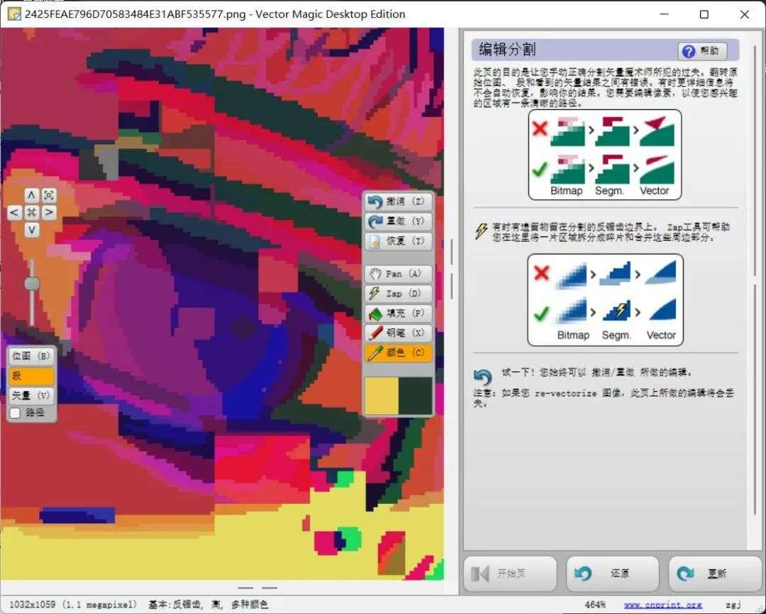 等待几分钟一个矢量图就诞生了,有时候不满意软件对一些细节的处理,你还可以在《Vector magic》里对压缩后的画面进行简单的调整,补充一些生成预览矢量图后被略去的细节后,再点「更新」 观察新的结果。