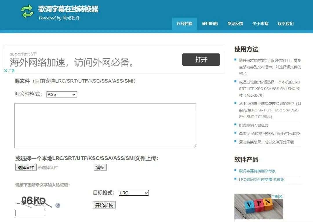 由倾诚软件推出这款在线字幕转换工具可以帮助用户实现 SRT、ASS 等字幕文件与歌词文件 LRC 的转换。