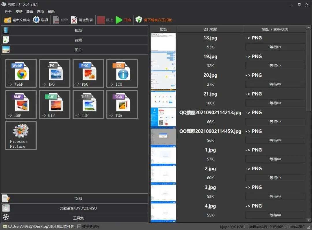 若果你从网页另存为到一些奇奇怪怪的图片格式文件无法打开,不妨都会先丢进这款软件试试。需要用到批量图片转换的时候《格式工厂》的转换速度也是快得飞起,十几张图片一秒钟就转好了。