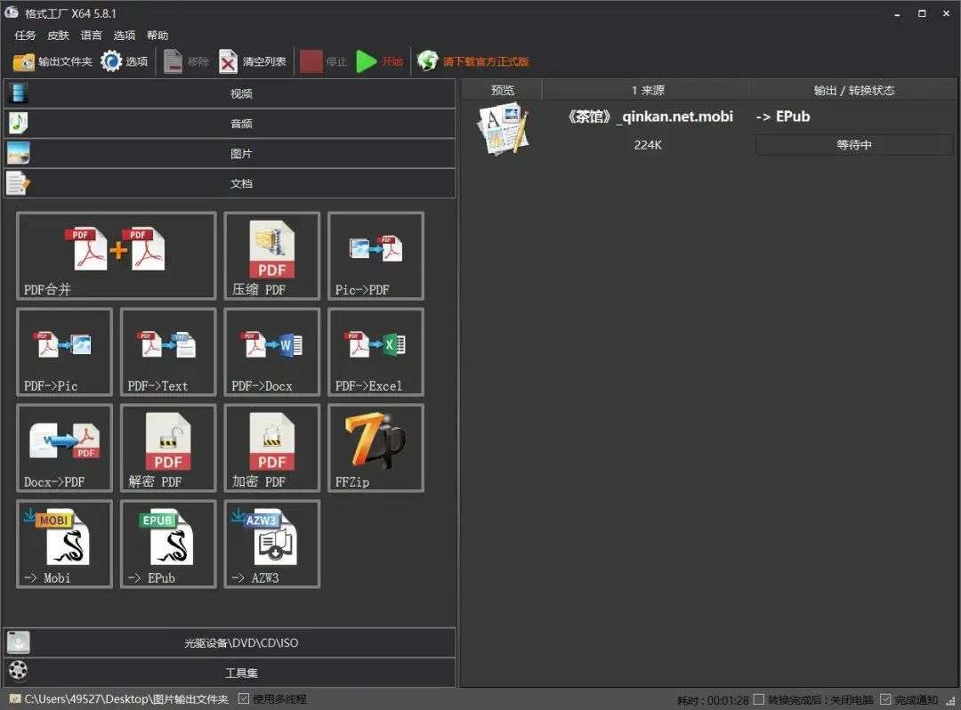 另外下载 Epub、Mobi、AZW3 的转换插件后你将能在《格式工厂》中实现这三款经典电子书格式文件的互转。