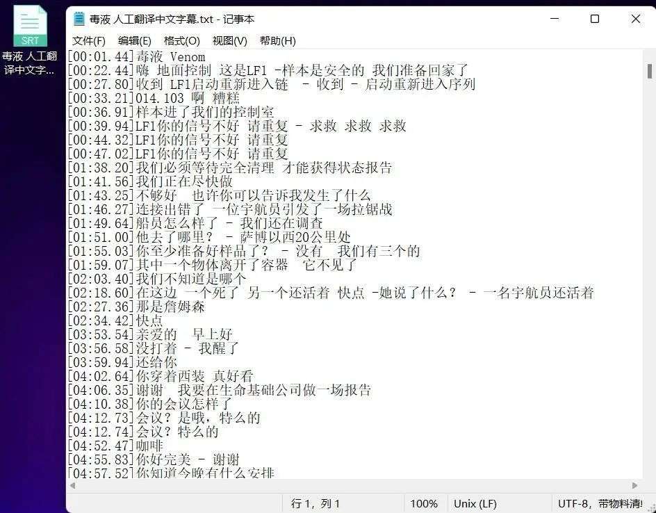 比如我们把从网上下载的电影《毒液》的 SRT 字幕文件上传,点击开始转换后过半分钟,就可以得到它作为歌词格式的版本。