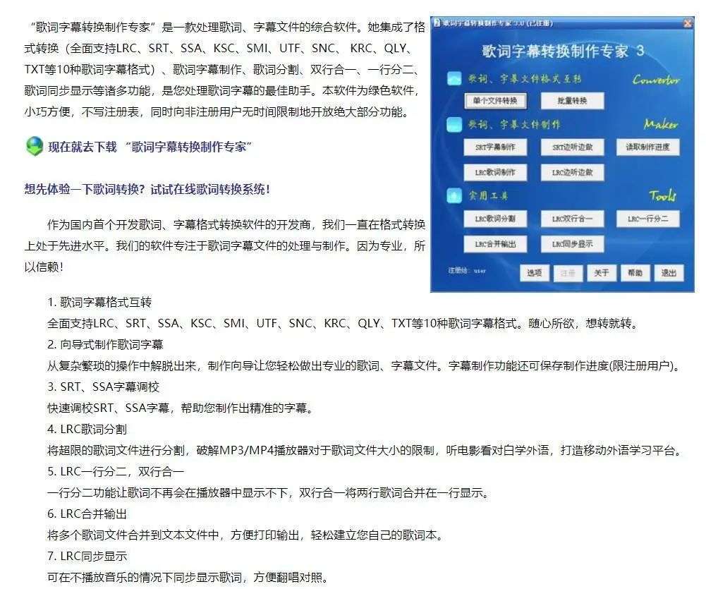 *《歌词字幕转换专家》5.03 MB,Windows 可用,免费
