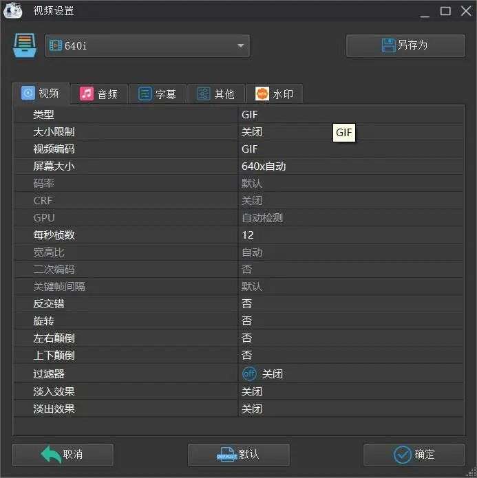 用《格式工厂》制作动图也是很方便的,在「视频」 一栏中点击「GIF」 选项将打开软件内置的 GIF 生成器插件。