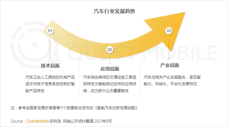 1. 在5G、AI、物联网、大数据等技术的驱动下,汽车从单纯的交通运输工具逐渐转变为智能移动空间和应用终端,成为新兴业态发展的重要载体,吸引多流派玩家入局