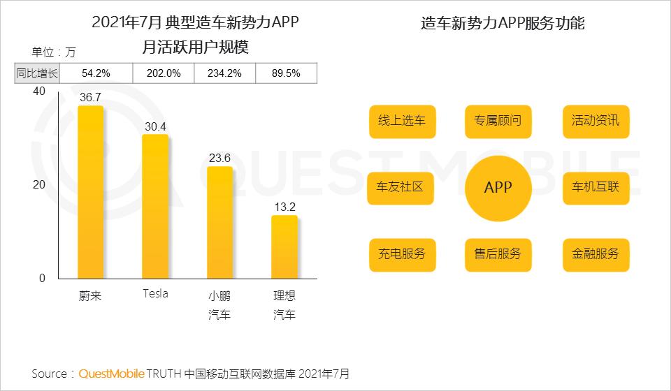 2. 用户体验成为造车新势力们运营及营销发力点,从选车-购车-用车-后车服务等全链条服务功能均可通过APP实现,用户规模提升显著