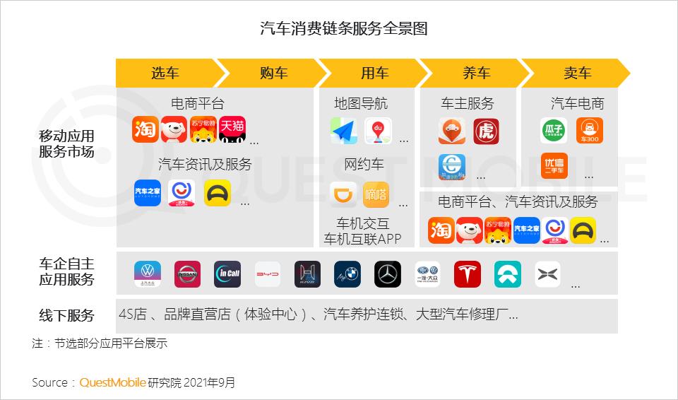 2. 移动应用服务市场围绕汽车消费链条已形成多元化服务平台,车企数字化升级趋势下,自主APP服务能力愈加完善,普遍具备车机互联服务