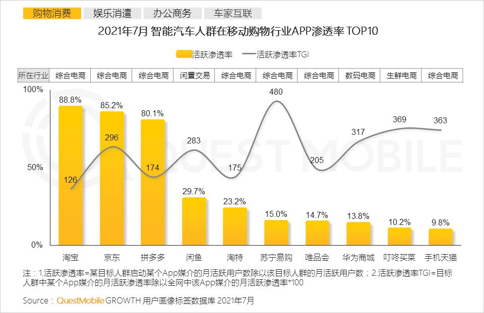 2. 淘宝、京东及拼多多为智能汽车人群主流购物渠道,渗透率均超过八成,各大综合电商平台不断延伸汽车服务链条,完善 “线上选购+线下服务”模式,获得智能汽车人群的青睐