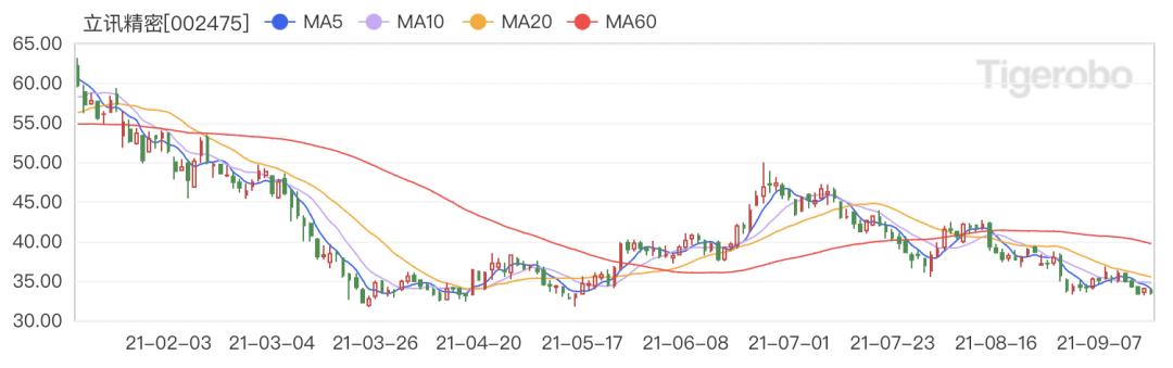 而坏消息是,作为与苹果“同呼吸共命运”的供应链企业似乎与苹果荣辱与共的时刻越来越少——去年发布的iPhone 12虽然大卖,但果链企业的股价却始终整体低迷;在今年苹果股价创下历史新高的时刻,不少A股苹果供应链企业股价大幅回撤甚至有人几近腰斩。自今年1月14日阶段性高点以来,立讯精密、信维通信、领益智造等个股累计跌幅超过40%,蓝思科技、鹏鼎控股、长盈精密等个股累计跌超30%。据统计,2021年半年报中,多家苹果供应链公司业绩大幅下降,37%的果链公司净利润同比下滑。