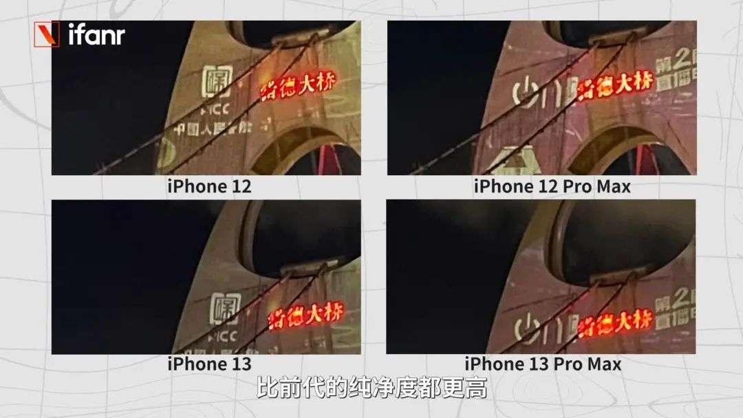 在夜景下,iPhone 13 系列的主摄,比前代的纯净度都更高,噪点更少。至于大家都关心的「鬼影」,iPhone 13 系列似乎没有改善。另外今年 iPhone 13 全系主摄均配备传感器位移式光学防抖功能,暗光环境下,手持成片率更高了。