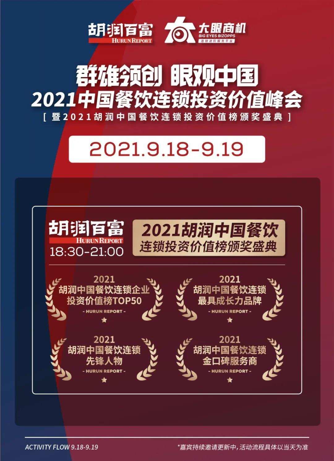 “2021中国餐饮连锁投资价值峰会”由著名的《胡润百富》董事长兼首席调研官胡润先生,携手1500+个餐饮品牌、一线重磅资本方、头部连锁餐企品牌创始人、产业链相关从业精英、行业专家以及餐饮媒体嘉宾共同出席;聚焦中国餐饮连锁投资价值,共同助力餐饮品牌的连锁化。