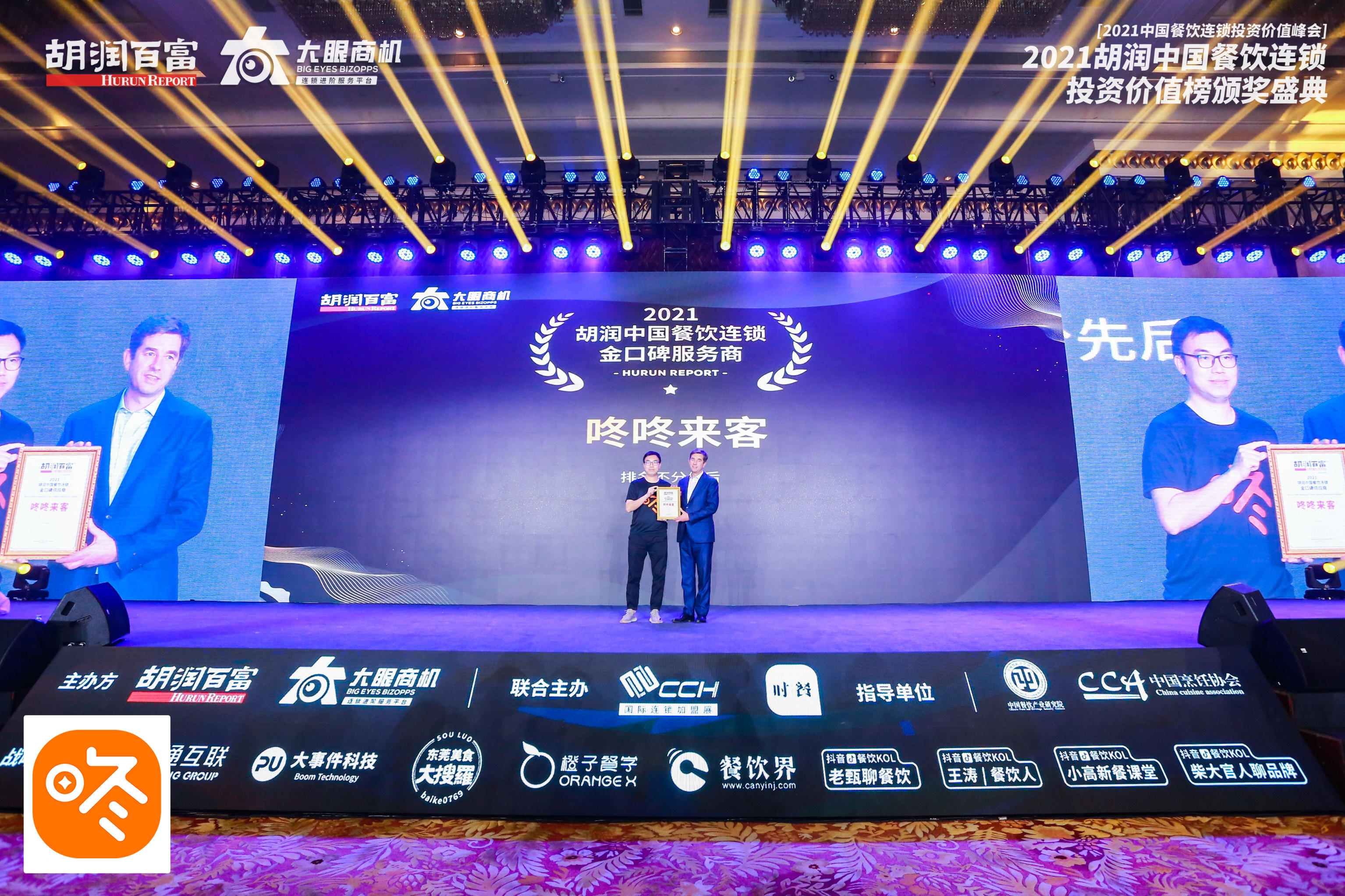 咚咚来客荣获“2021大眼商机·胡润中国餐饮连锁金口碑服务商奖”