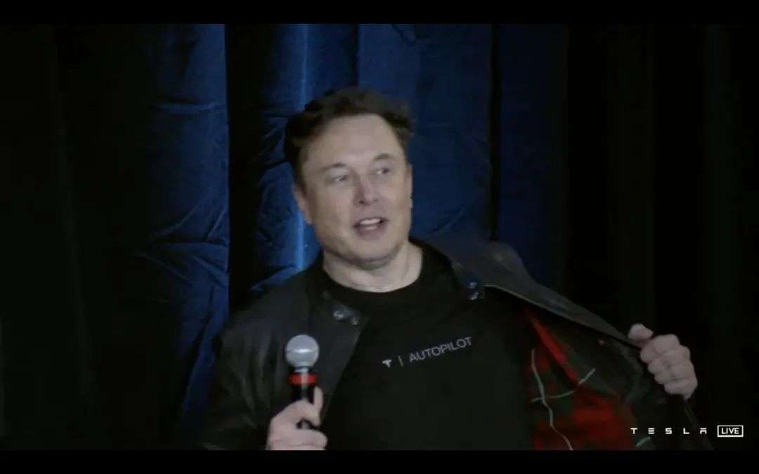 如果一定要问我其中记住了什么,我心里好像只有一个栩栩如生的画面。在 AI Day 直播开始后的 2 小时 53 分处,马斯克风骚地撩开夹克并回应记者的提问,说道: