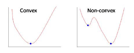 非凸就是下图中在右侧的函数,有多个局部极值,而不是像左边的凸函数那样只有一个极值。