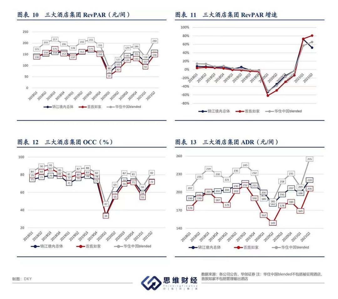 在入住率方面,2021年上半年,锦江酒店入住率为65.79%,同比增加19.29个百分点;华住集团为82.3%,同比增长13.5个百分点;而首旅酒店2021年第二季度入住率为71.9%,同比增加16.8个百分点。